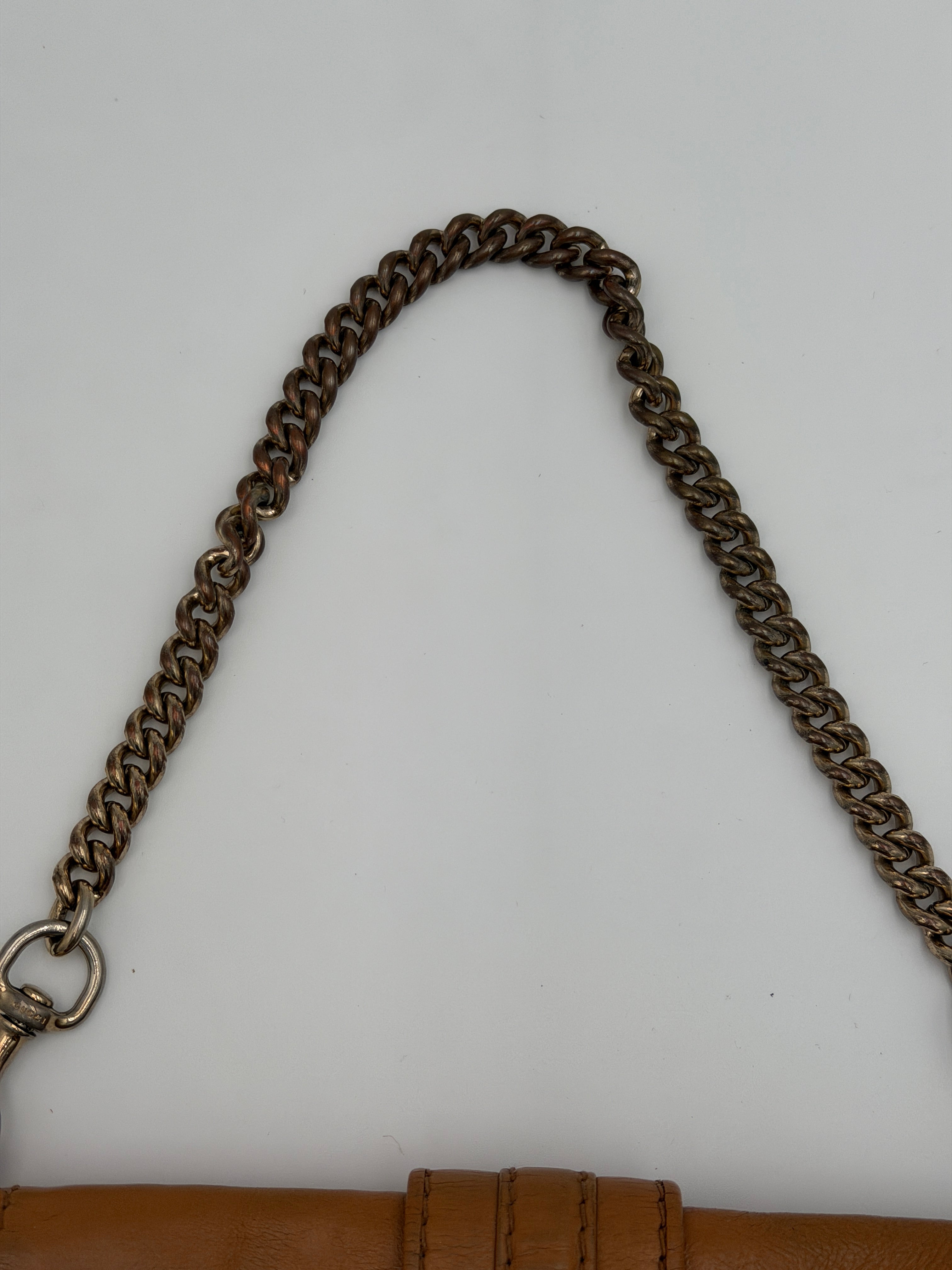 Condition: Good - marks on leather throughout, metal tarnish throughout.